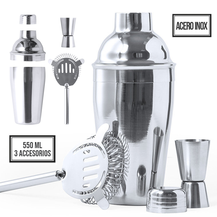 - Accesorios Incluidos: Cocktelera de 550ml con cierre de seguridad y tapón dosificador, colador con asa y medidor single/double para mezclas precisas.