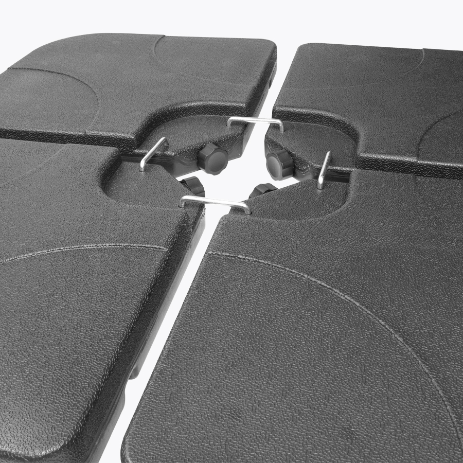 Set de 4 bases plásticas cuadradas rellenables (con arena o piedrecilla, para darle mayor peso), con una capacidad total de 60kg