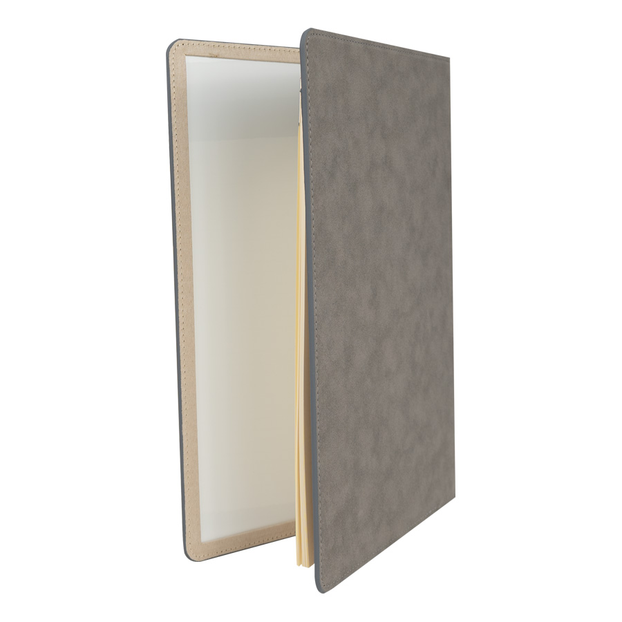 Set de Escritura con Carpeta tamaño A4 de Termo-PU con costura modelo «PHILLIP», interior block de apuntes con 80 hojas lineadas amarillas de 80g + pizarra blanca laminada + lápiz de tinta negra removible.