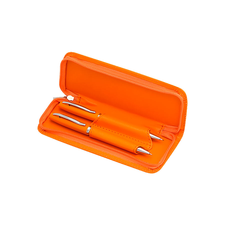 Set de Escritura «Finit». Incluye Bolígrafo Metálico + Portaminas Metálico. Minas 0.7mm incluidas. Presentación en fino estuche simil cuero.
