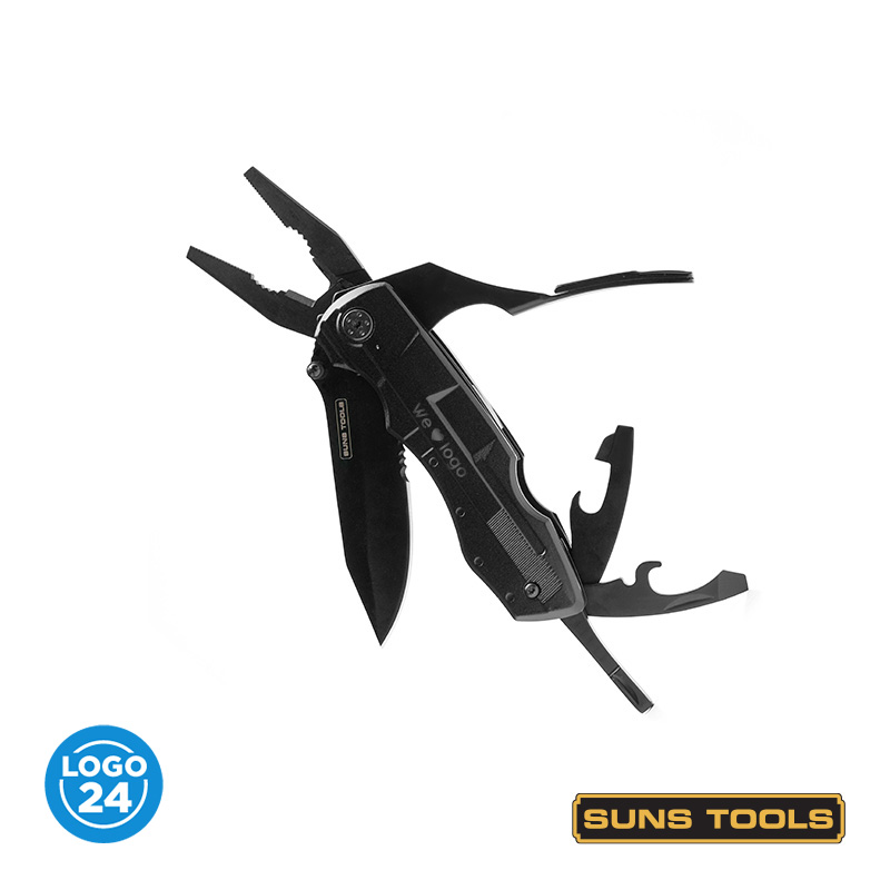 Multi herramienta de acero inoxidable de 8 funciones. Incluye juego de 9 cabezales y funda. Cuenta con pinza, navaja y destornillador con cabezales intercambiables. Medidas: 4,3 x 14,3 x 15,5 cm. Suns Tools. LOGO24: Producto disponible para el servicio de logueo en 24 horas respetando unidades mínimas de logueo y 200 unidades máximas. Consultar términos y condiciones del servicio
