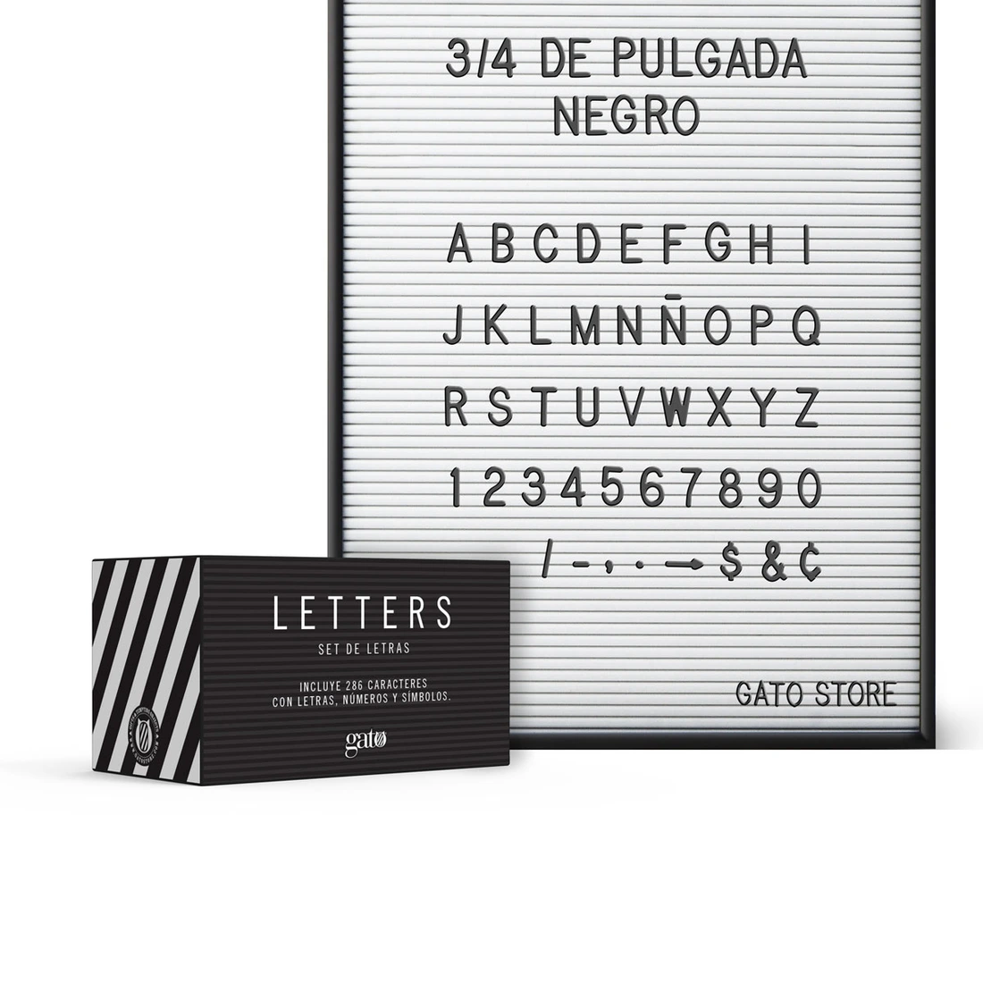 Set de 286 caracteres de 3/4 de pulgada de alto para la cartelera Letter Board. Disponible en 3 colores. Incluye letras, números y símbolos.