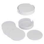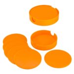 Set de 6 Posavasos Plásticos Redondos de 9.9 cm de diámetro, en plástico ABS de 3 mm de espesor. Contenidos en dispensador redondo del mismo material y color. Presentación en caja de cartulina blanca.
