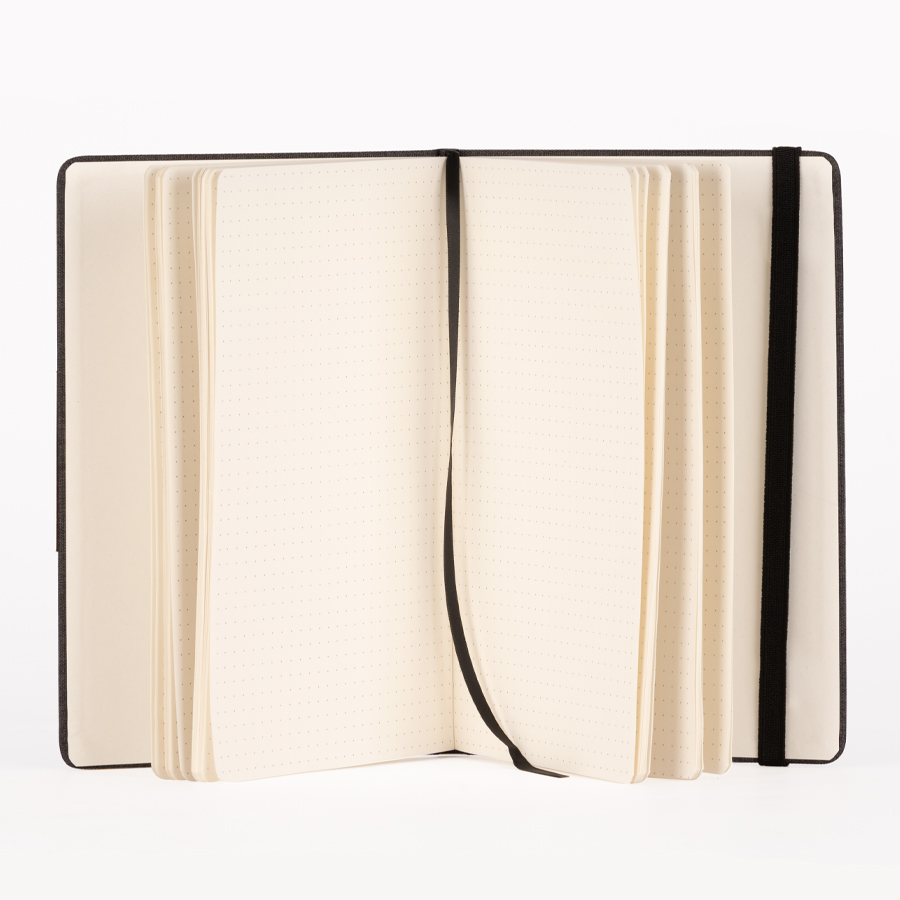 Set de Regalo incluye Termo 550 cc. producto BPA FREE, para el contacto con líquidos y alimentos, con tapa twist-off y asa redonda encobrizada + Cuaderno tapa dura recubierta en tela Oxford negro, con cierre elasticado y detalle metálico encobrizado, interior 80 hojas punteadas (dotted) color ivory (hueso) + Bolígrafo metálico encobrizado con tela Oxford negra, escritura negra . Presentación en elegante caja de carton color negro con tapa, interior cuna de EVA aterciopelada negra. Sobre funda de papel negro.