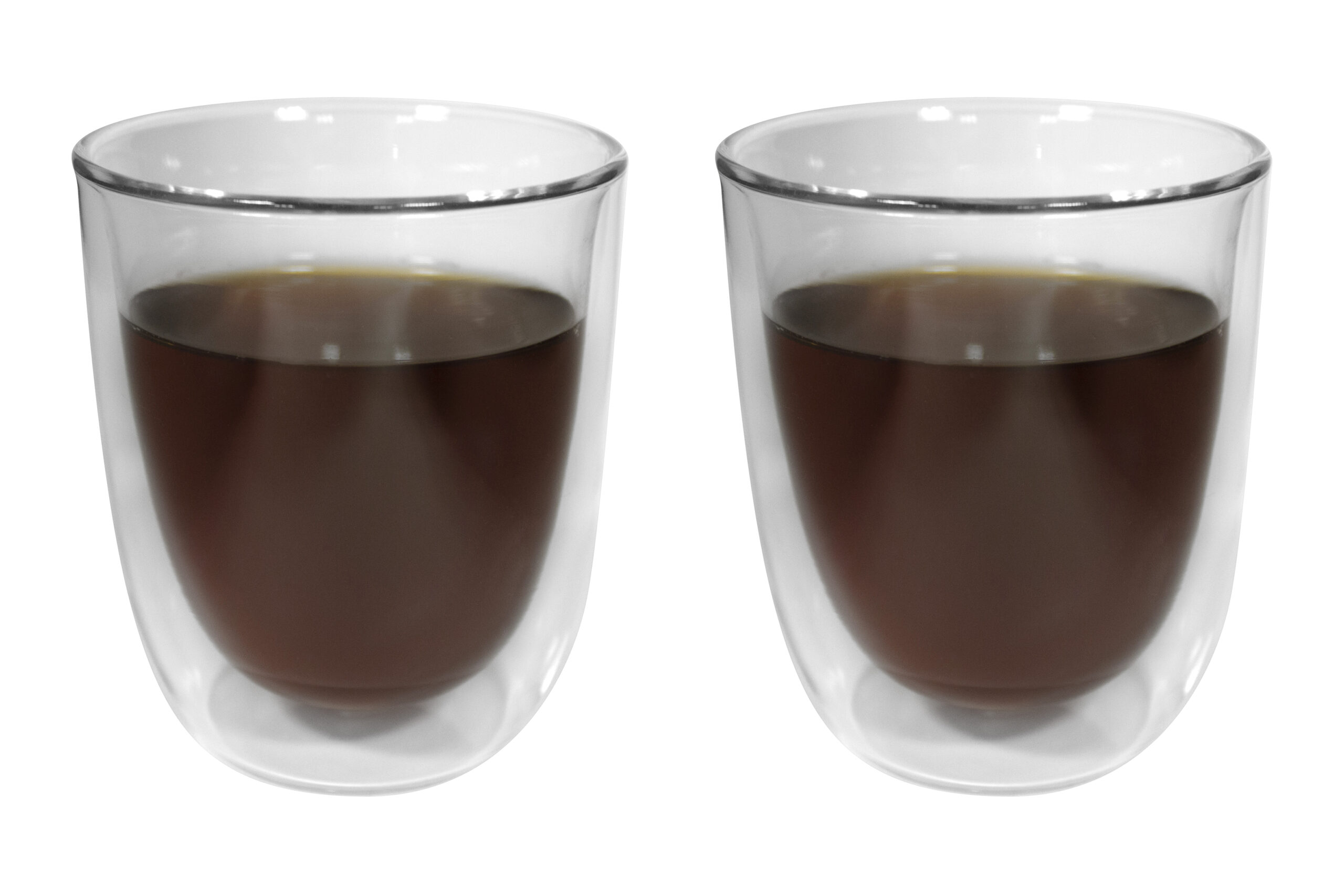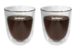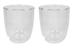 Ø 8,3 x 10 cm. Capacidad 280 ml cada vaso. Vidrio. Set de vasos doble pared. Apto para bebidas frías y calientes. Presentación en caja de regalo.