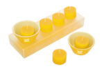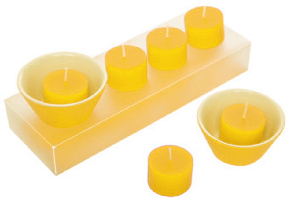 21,8 x 7,5 x 3,5 cm. Set de 6 velas de color y 2 portavelas de cerámica. Presentación en caja transparente de regalo.