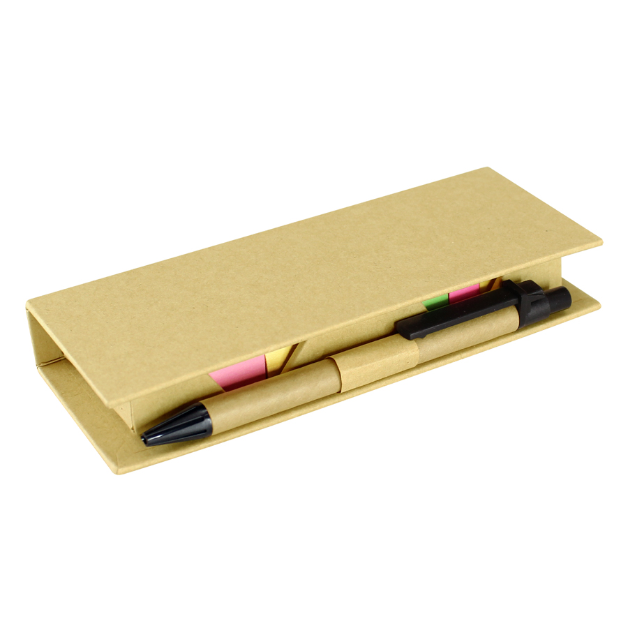 Memo Set Ecológico con Bolígrafo Ecológico escritura negra, Regla 12 cm, notas y banderitas adhesivas. Incluye 300 notas adhesivas cuadradas + 750 banderitas adhesivas de colores.