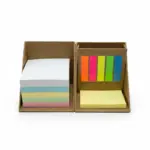 Set de notas adhesivas con diseño tipo cubo. Cuenta con un block de 500 hojas en colores surtidos, compartimientos para notas y banderitas adhesivas de colores. Es ideal para escritorios de oficina, espacios de estudio o como herramienta organizativa diaria.