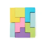 Set de notas adhesivas con diseño tipo Tetrix. La caja esta realizada de cartón reciclado; las notas adhesivas de papel offset (73 gsm); y el empaque de papel kraft (300 gsm). Cuenta con 200 mini notas adhesivas en colores y formas geométricas variadas, presentadas en caja con tapa deslizante. Es ideal para organizar ideas, marcar páginas o dejar recordatorios de forma creativa y colorida.
