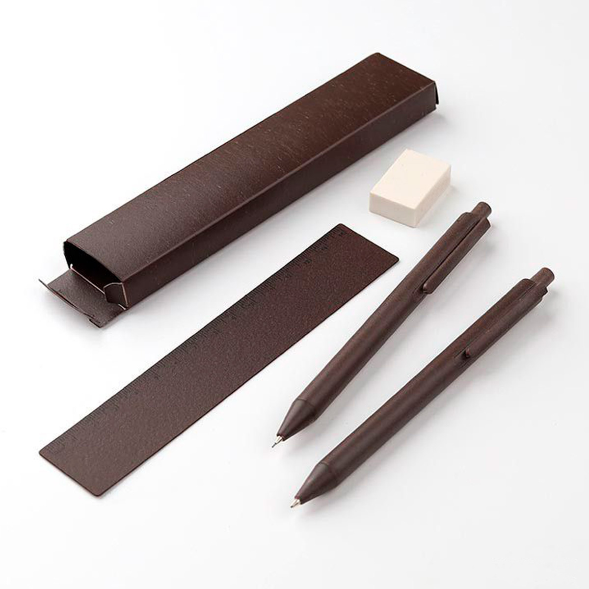 MINAS GERAIS transforma el escritorio en un espacio con propósito. Este set de papelería, elaborado a partir de fibra de café reciclada, incluye bolígrafo, lápiz, regla con impresión métrica, goma de borrar y estuche del mismo material con el mensaje “The Green Life”. Cada elemento refleja una mirada hacia la sostenibilidad sin perder funcionalidad. El diseño compacto y el mensaje grabado en su caja lo convierten en un obsequio ideal para espacios educativos o entornos de trabajo responsables. Personalízalo y haz que tu marca inspire creatividad y conciencia ambiental desde el primer trazo