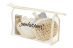 18,5 x 12 x 5 cm. Plástico. Set con 2 esponjas una es exfoliante, piedra/lima y cepillo para uñas.