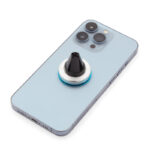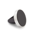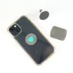 Soporte autoadhesivo e imantado para teléfonos celulares, que permite colocarlo en el auto. No es recomendable utilizarlo sobre fundas de silicona.