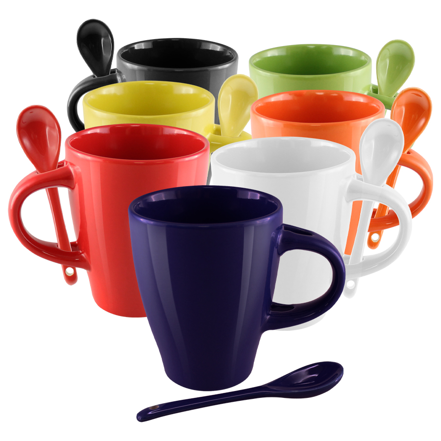 Tazón Cerámico con Cuchara. Presentación individual en caja de cartón blanco.