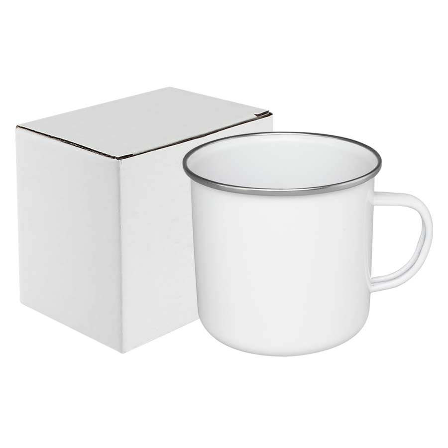 Tazón grande de acero enlozado «Enamel» de 700cc. con cobertura para Sublimación. Único con borde de Acero Inoxidable, que entrega higiene y protección al contacto con tu boca.