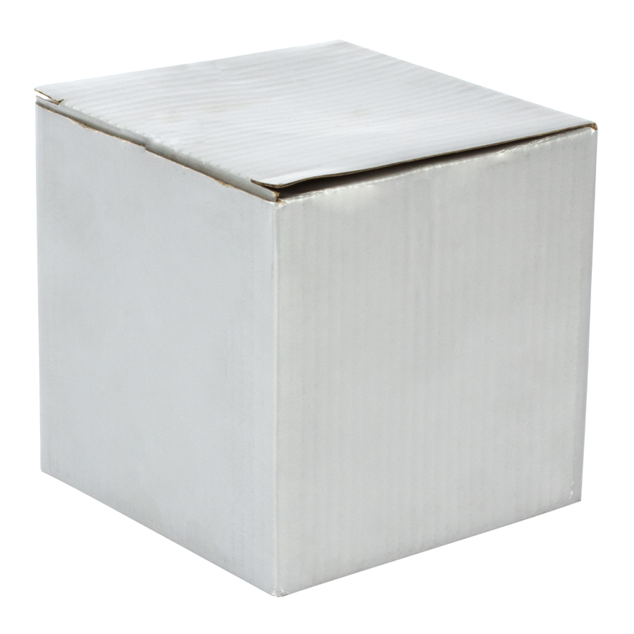 Tazón cerámico de 350cc. con superficie exterior glitter plateado, para Sublimación. Incluye caja blanca de Cartón color plata.
