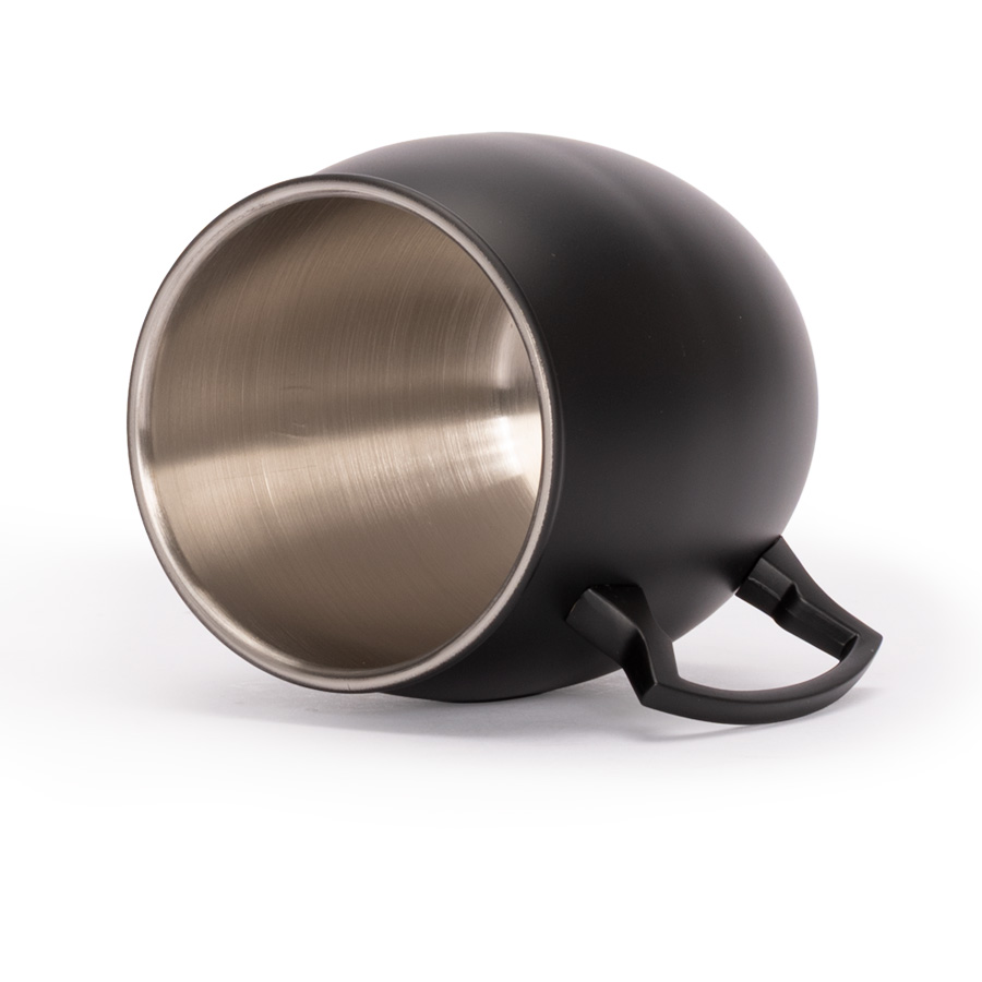 Tazón de Acero inoxidable 304 SS de 0.6mm de espesor, con superficie lisa y asa en color negro mate (opaco). Producto BPA FREE, para el contacto con líquidos y alimentos. Capacidad 400ml. Presentación en bolsa PP + caja de regalo de cartón negro.
