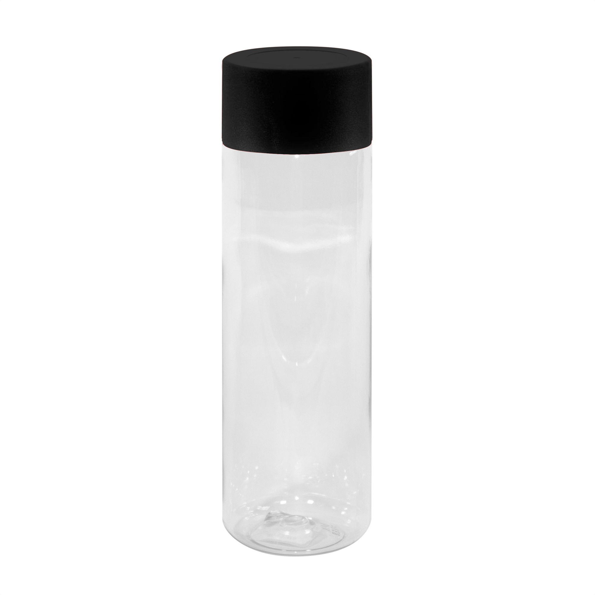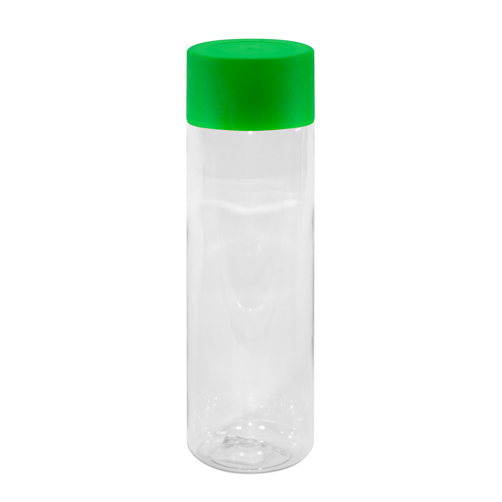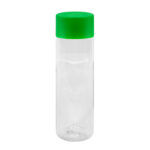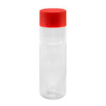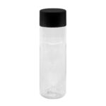 Botella de plástico transparente con tapa a rosca plástica.