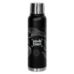 Ø 8,4 x 30 cm. Capacidad 1000 ml. Acero inoxidable. Termo Doble pared con recubrimiento de cobre. Interior en acero 304 y exterior en acero 201. Pintura Powder Coat (pintura mas duradera y resistente a la corrosión y el paso del tiempo). Tapa de acero a rosca. Tapón con apertura y cierre a presión.  Mantiene por más de 12 hs la temperatura de las bebidas calientes y 24 hs de las bebidas frías. Presentación en caja de regalo.