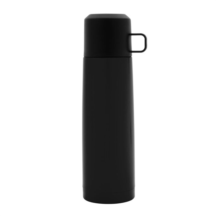 Disfruta de cada sorbo, caliente o frío.Termo con doble pared sellado al vacío. Tecnología vacuum. Acero inoxidable 304 interior / 201 exterior. Tapa y taza plásticas en color negro. Pintura acabado mate. Mantiene hasta 6 hs la temperatura de las bebidas calientes y 12 hs de las bebidas frías.Medidas: Ø 7 x 24 cm