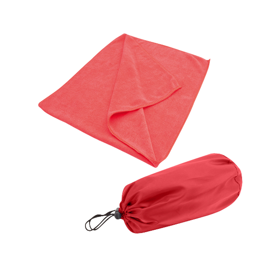 Toalla deportiva en tela Microfibra. Presentación dentro de bolsito de nylon 190D/PU.