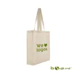 Tote bag fabricada en algodón de 4.5 oz (140 gsm) en color natural, con fuelle. Ideal para quienes necesitan una bolsa de algodón espaciosa y cómoda para el uso diario, para llevar compras, libros o artículos personales. Medidas: 40 x 34 x 10 cm. El producto viene en una bolsa de PLA 100% compostable. ReUseMe