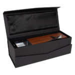 Elegante Trofeo de Madera y Cristal modelo «Silver Star»». Incluye estrella de acero inoxidable en una de las aristas de madera. Presentación en caja de cartón forrado negro con cierre imantado, interior acolchado de espuma y tela poliéster satinado negro, con troquel.