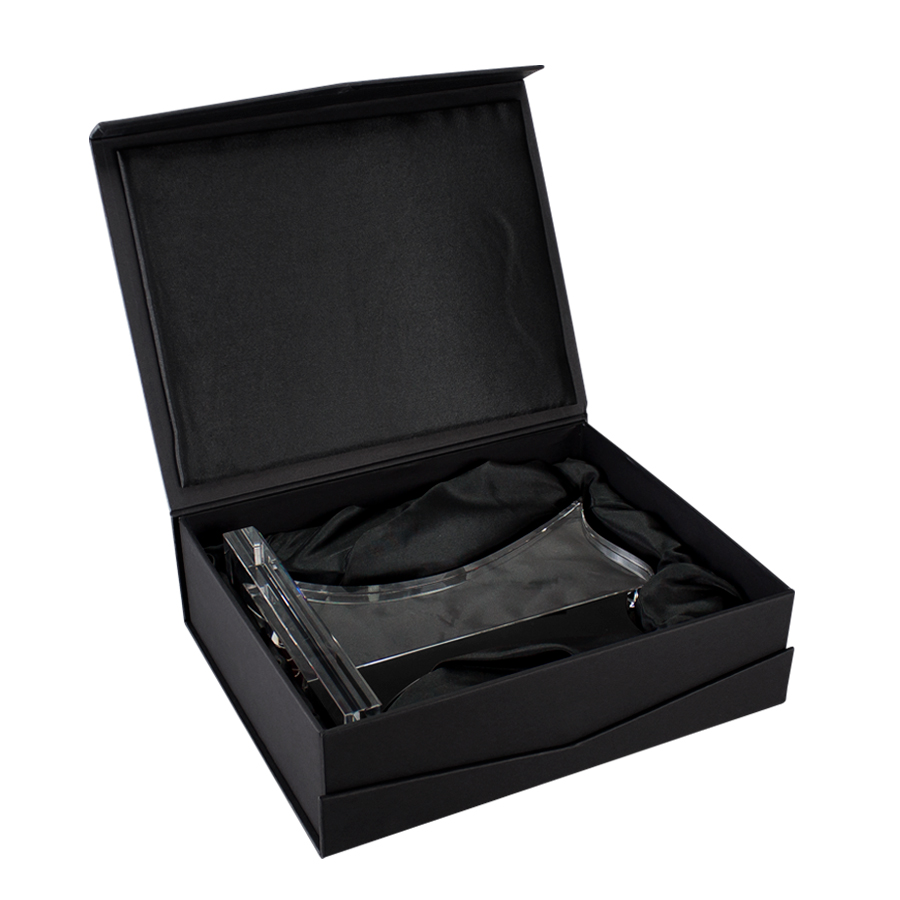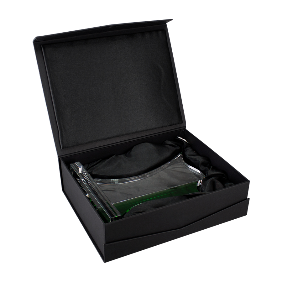 Deluxe Trofeo grande de Cristal modelo «Bauhaus» con aplicación de cristal-color. Presentación en caja de cartón forrado negro.