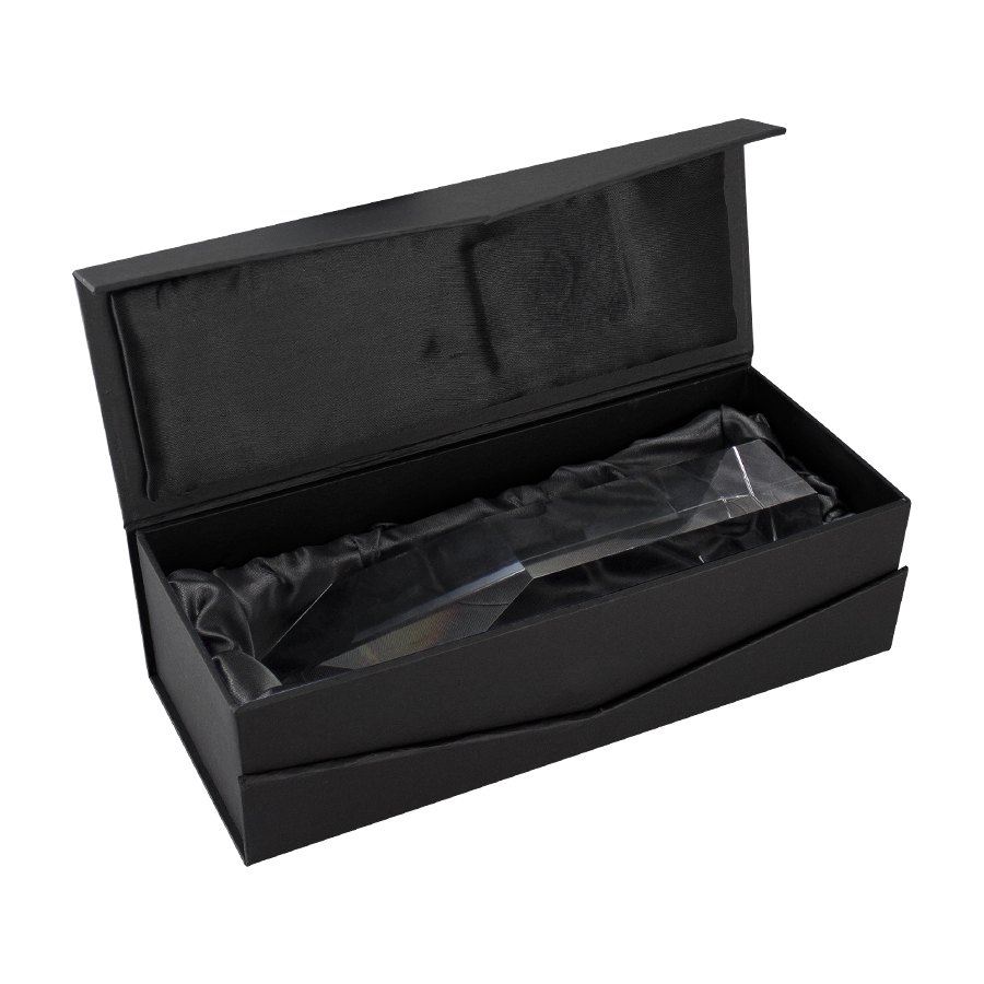 Trofeo grande de Cristal modelo «Hexagon». Presentación en caja de cartón forrado negro.