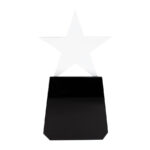 Elegante Trofeo modelo «Biondi», base de cristal negro y estrella de cristal en su parte superior. Presentación en caja de cartón forrado negro con cierre imantado, interior acolchado de espuma y tela poliéster satinado negro, con troquel.