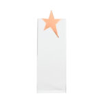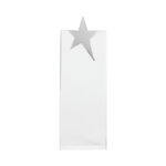 Elegante Trofeo Galvano de Cristal modelo «Ledecky», con estrella de acero inoxidable de color metalizado en su parte superior. Presentación en caja de cartón forrado negro con cierre imantado, interior acolchado de espuma y tela poliéster satinado negro, con troquel.