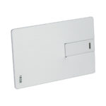 USB 2.0 Pendrive memoria de 16GB, forma y tamaño Tarjeta de Crédito 100% plateado, con USB twist-system. Presentación en elegante estuche de plástico translúcido con cierre imantado, dentro de cuna de esponja EVA negra.