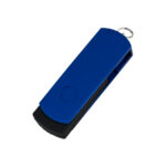 USB Pendrive 2.0 con 32GB de memoria, con cuerpo de silicona negra y carcasa metálica de giro de color, removible. Presentación en estuche de PVC translúcido.