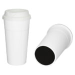 Vaso grande de 480ml. modelo «Cloud» de plástico blanco, con tapa rosca de silicona blanca. Presentación en caja de cartón blanco.