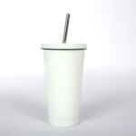 Vaso blanco de Acero Inoxidable, doble pared aislante, con tapa rosca y bombilla de Acero Inoxidable, para Sublimación. Calidad superior «ORCA». Capacidad 550cc (15oz). Presentación en bolsa blanca + estuche de cartón blanco.