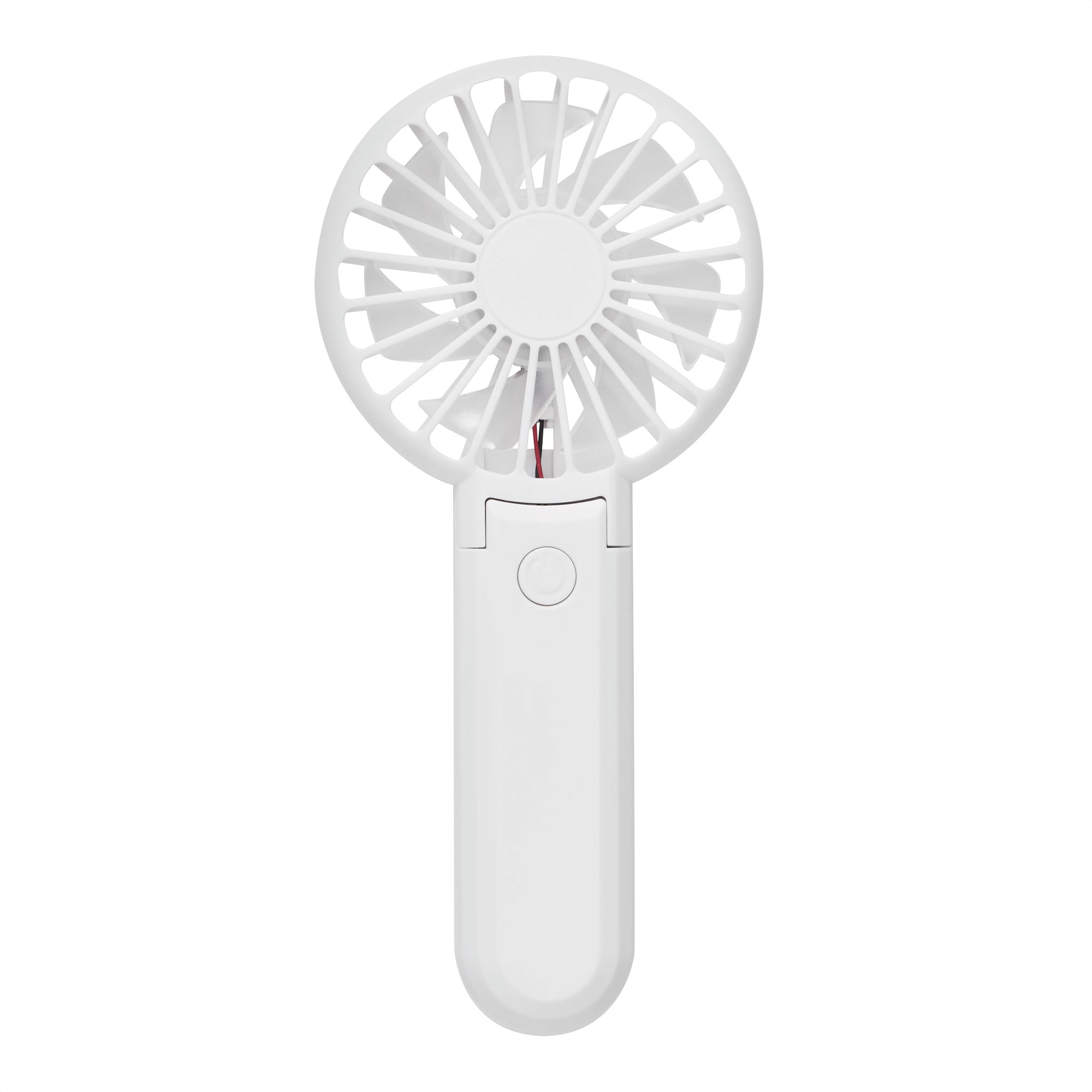 Frescura portátil, donde estés.Mini ventilador portátil. Plegable a 180° con doble función, de mano y de escritorio.  Diseño compacto, tamaño de bolsillo, ligero y fácil de transportar. 3 velocidades (niveles de flujo de aire: bajo, medio y alto). Silencioso. Batería recargable via USB. Cable de carga USB C color blanco.Medidas: 7,8 x 17 x 2,5 cm. y 7,8 x 9,5 x 4,5 cm. (plegado)